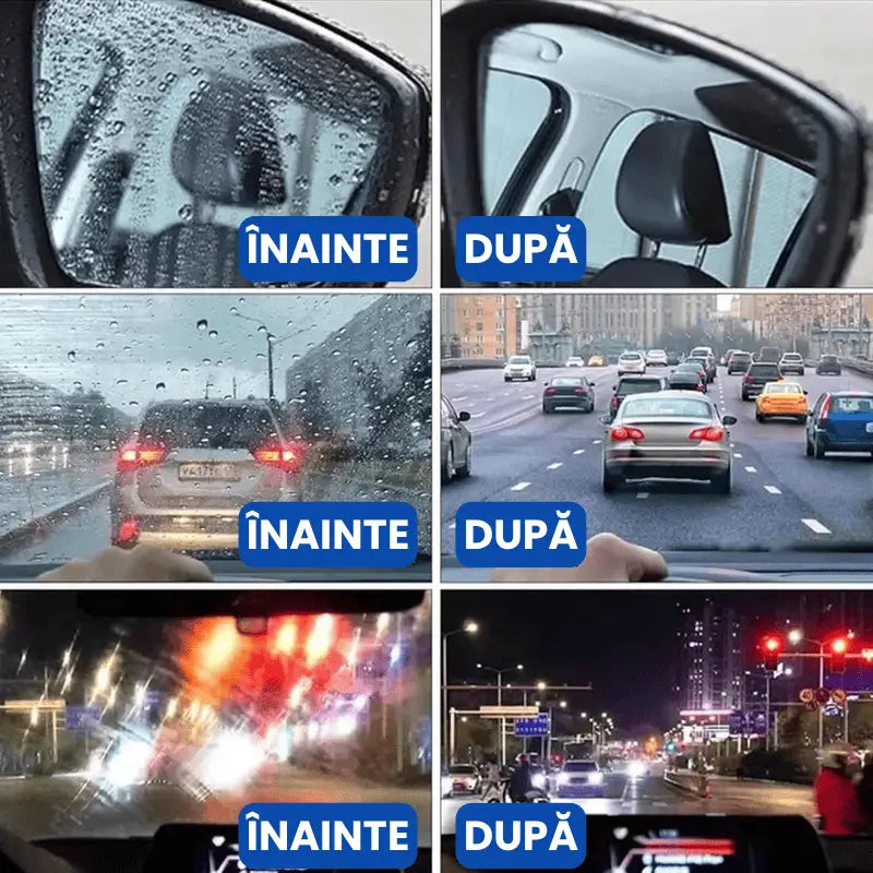 Fără geamuri aburite sau pline de apă dimineața! Soluția hidrofobă pătrunde pe suprafața geamului și creează strat protector care respinge apa, murdăria și aburul, oferind vizibilitate clară.