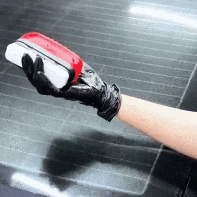 Doar scoți capacul, apeși buretele pe parbriz, soluția se distribuie instant și apoi ștergi ușor.