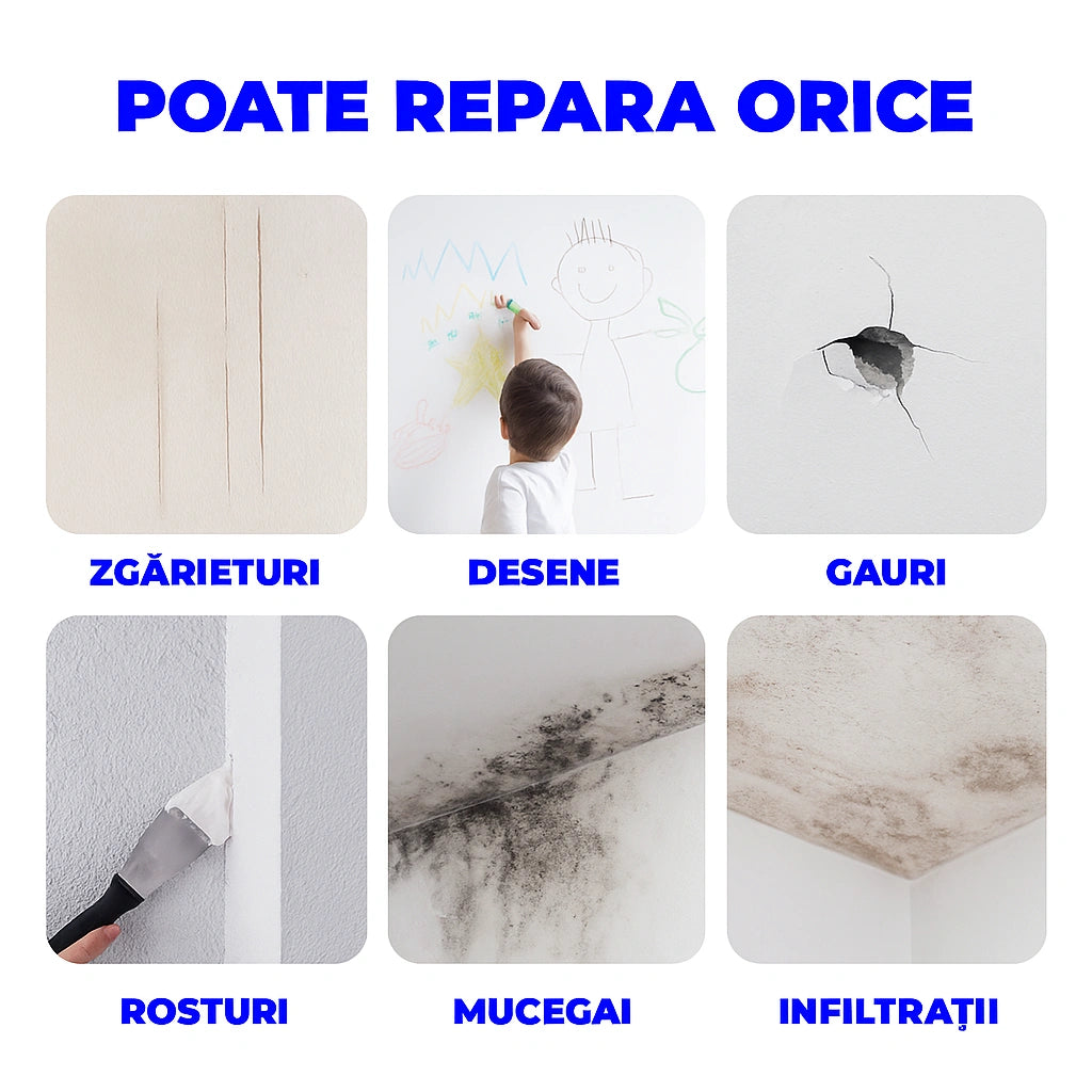 Tot ce trebuie să faci este să aplici pasta pe crăpătură, să o netezești și să o lași să se usuce. În doar câteva ore, peretele tău arată din nou perfect.