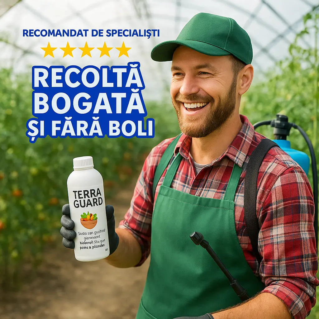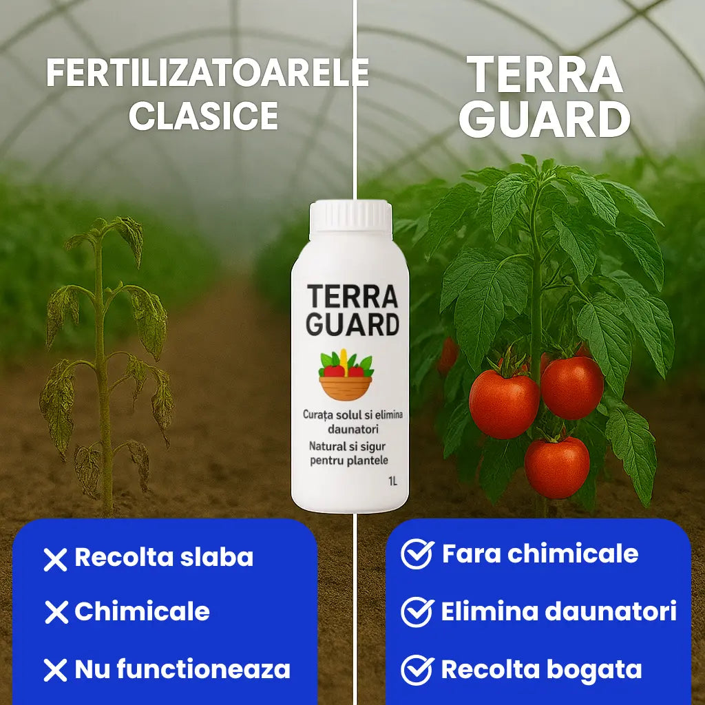 TerraGuard™ este un dezinfectant 100% bio pentru sol, care elimină bacteriile și fungii dăunători, revigorează pământul și stimulează microorganismele benefice.